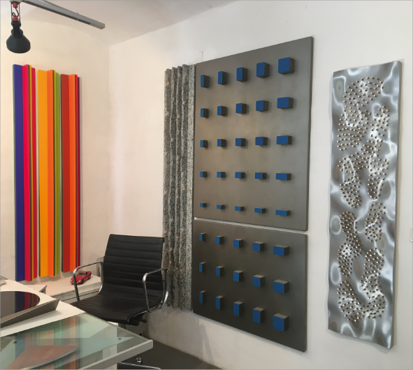 Günther Beckers bildnerische Arbeiten haben in der Entstehung einen Bezug zum architektonischen Entwerfen: An der Architekturfakultät Karlsruhe hatte er im Fachbereich Kunst bei Professor Carl-Heinz Kliemann studienbegleitend Siebdruck,Radierung, Metallarbeiten und Entwürfe für »Kunst am Bau« belegt.